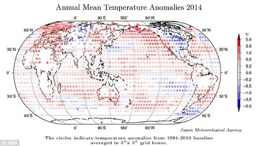 Hiệp hội khí tượng học Nhật (JMA) vừa trở thành tổ chức mới nhất lên tiếng tuyên bố 2014 là năm nóng nhất trong lịch sử thế giới.