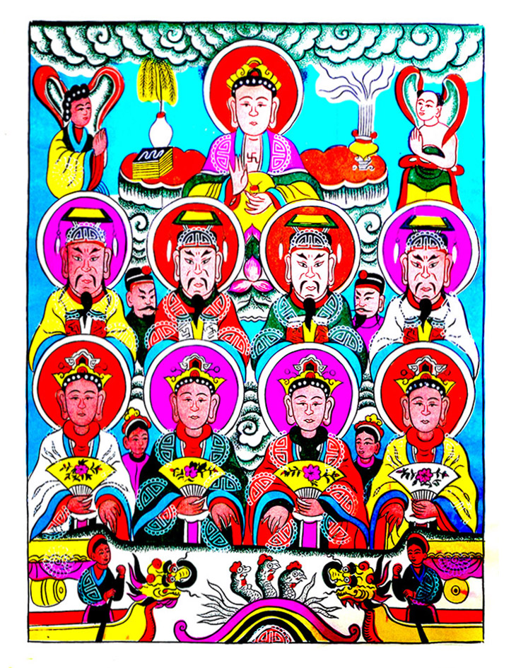 Tranh 1. Quan Âm và các vị thần linh Tam phủ