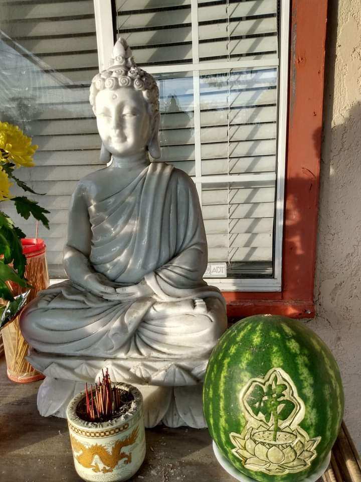 “Chùa, dù lớn hay nhỏ cũng phải có tượng Phật để ở phía trước,” Thượng Tọa Thích Pháp Giới cho biết. “Tôi buồn lắm vì tượng này làm bằng đá Non Nước trắng, do một Phật tử thỉnh từ Đà Nẵng, Việt Nam, về.”
