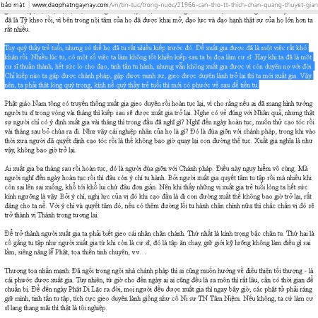 Ảnh chụp màn hình bài giảng tại chùa Bửu Trì trên trang phattuvietnam.net.