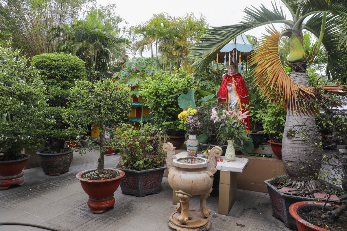 Sân thượng của chùa được trồng nhiều loại cây kiểng san sát nhau. Nơi đây có đặt tượng Bồ tát Quan âm và tháp nhỏ chứa cốt của vị hòa thượng sáng lập chùa.