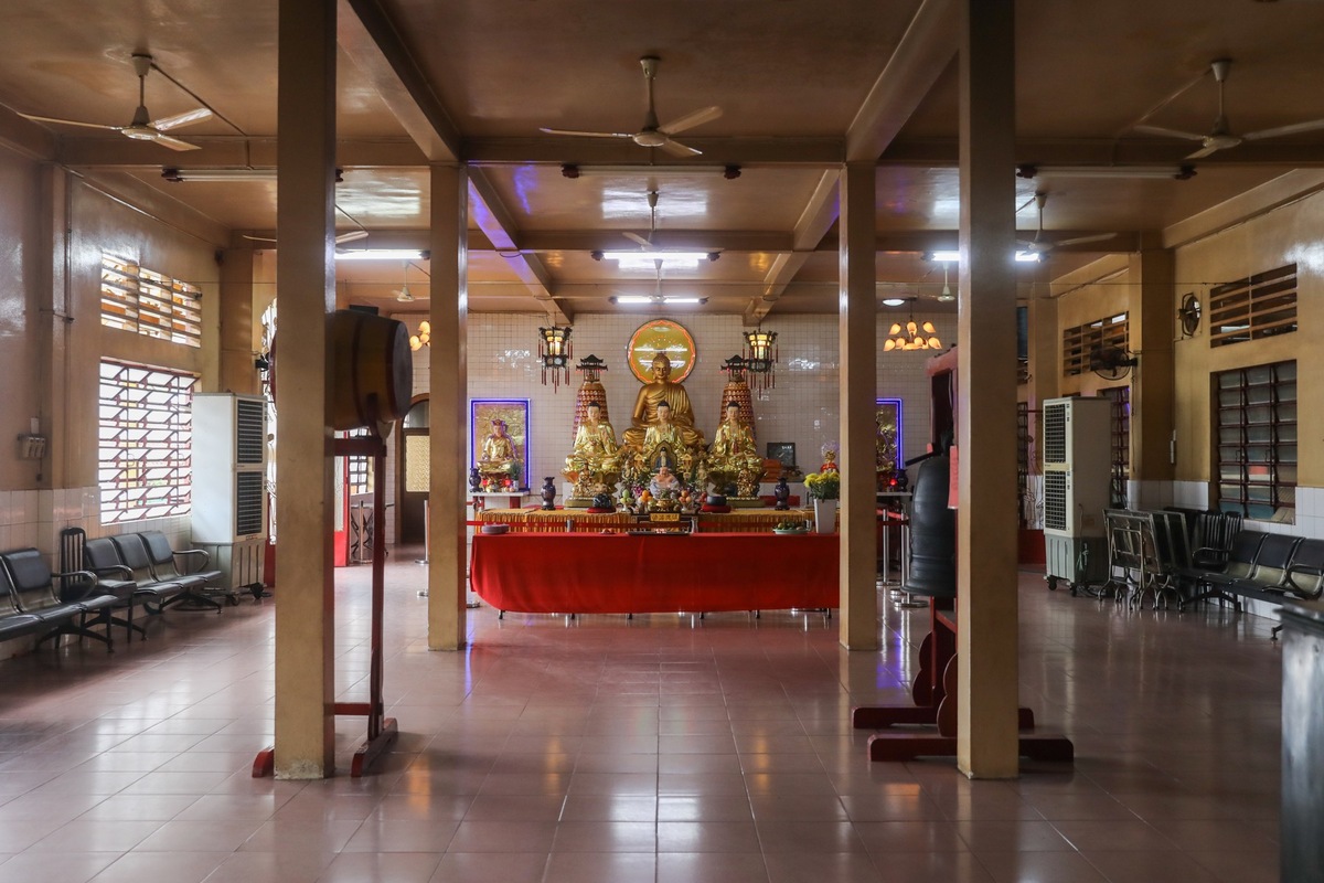 Bên trong ngôi chùa là không gian tương đương với 10 căn hộ, diện tích khoảng 700 m2. Hệ thống cột kèo, trần, nền… trong chùa đều giữ nguyên như thiết kế ban đầu của chung cư nhằm đảo bảo kết cấu chung.