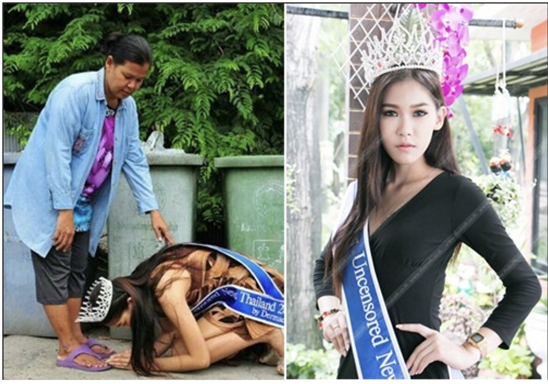 Hoa hậu Thái Lan quỳ gối trước người mẹ nhặt rác