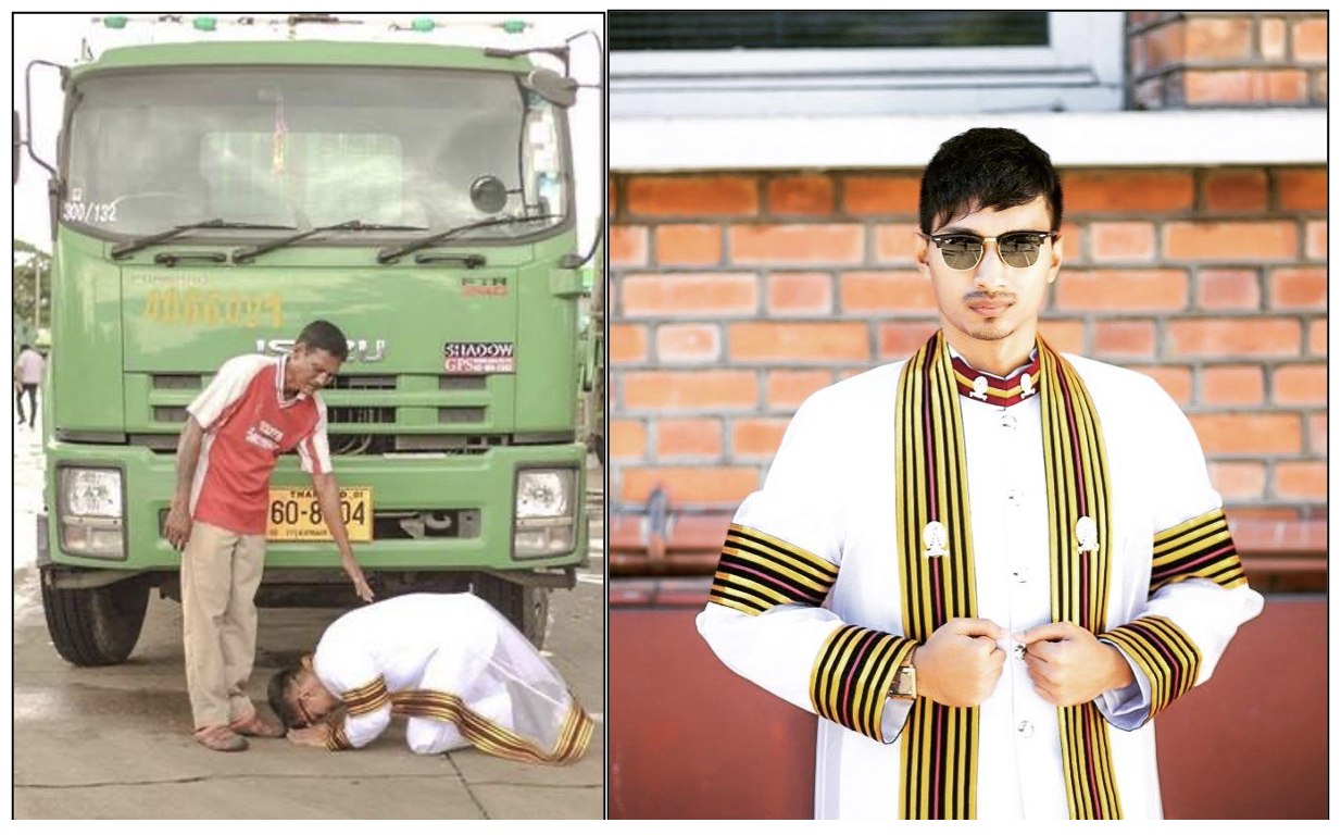 Câu chuyện của Mint gợi nhớ tới Kalangnalong, chàng trai người Thái, sinh viên vừa tốt nghiệp trường Đại học Chulalongkorn danh tiếng của Thái Lan. Chàng mặc nguyên cả bộ đồ tốt nghiệp cử nhân và chạy tới trước xe rác của cha, quỳ gối xuống bày tỏ lòng biết ơn sâu sắc đối với công ơn sinh thành dưỡng dục của ông. Hình ảnh này lan truyền mạnh mẽ trên mạng xã hội khiến cộng đồng xúc động.