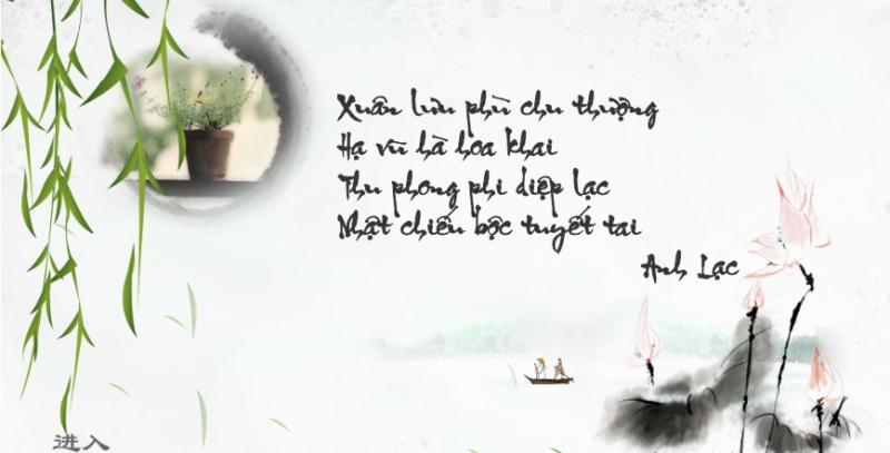 Sương tuyết bốn bề lạnh trắng sơn trang/ Mảnh tăng bào chắp vá chuỗi thời gian/ Chốn quạnh quẽ, sói lang là pháp lữ./ Hạt thông rừng làm thức ăn vừa đủ