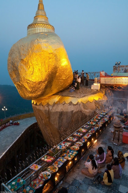 Những ai lần đầu nhìn đều cảm tưởng hòn đá sẽ lăn ngay xuống vực. Truyền thuyết Myanmar lý giải cho bố cục kỳ lạ này bằng câu chuyện của Đức Phật, tương truyền bảo tháp trên hòn đá chính là sợi tóc của ngài. Dù bạn có tin vào truyền thuyết hay không, trong khoa học địa lý đây là hiện tượng không thể lý giải.