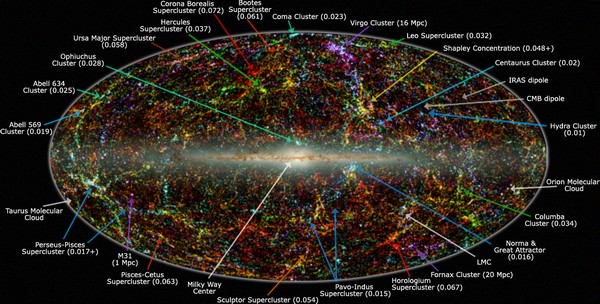 Chế độ xem toàn cảnh toàn bộ bầu trời gần hồng ngoại cho thấy sự phân bố của các thiên hà ngoài Dải Ngân hà. Các thiên hà được mã hóa bằng màu đỏ. https://en.wikipedia.org/wiki/Big_Bang.