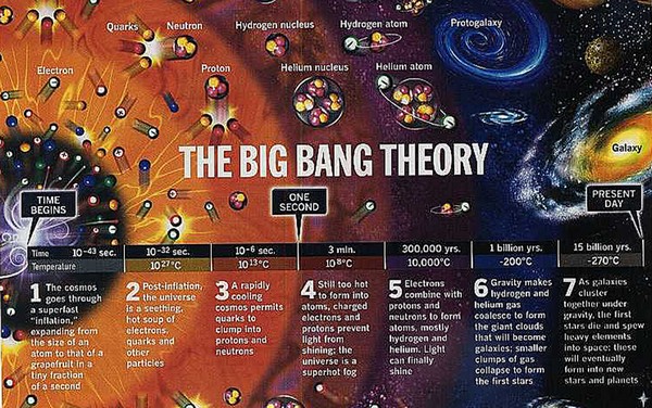 Ngày nay lý thuyết Big Bang đã được các nhà chuyên môn thừa nhận như một sự kiện khoa học đáng tin cậy để giải thích về sự hình thành của vũ trụ. Theo lý thuyết này, có thể hình dung nôm na thế giới ban sơ chỉ là một “điểm” đặc biệt có khối lượng vật chất cực lớn bị nén ép mà thành.