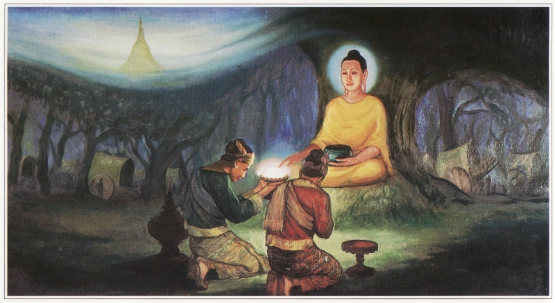 Hai thương gia người Miến Điện được Đức Phật ban cho 8 sợi tóc