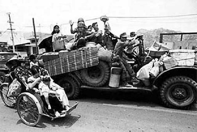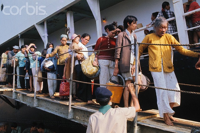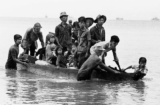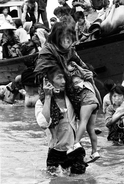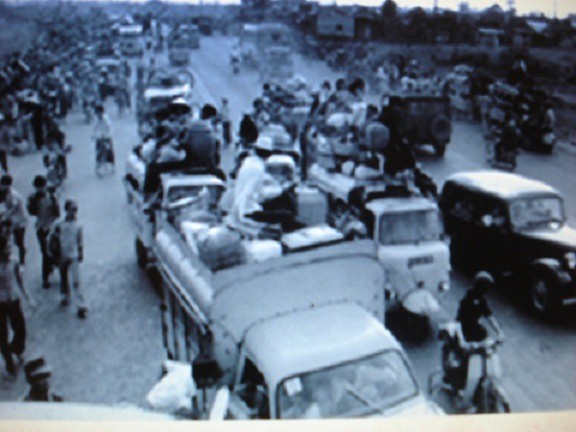 Với chút hành trang còn lại người cha cõng đứa con chạy trốn cộng sản ở Trảng Bom ngày 23 - 4 -1975Khắp nơi - Dân chạy tránh giặc cọng sản Vũng Tàu Ngày 9 tháng 4 năm 1975 Dân chúng chen chúc tìm lối thoát tại các bến tàu