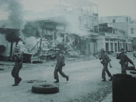 Ngày 28 - 4 – 1975, Xác T-54 trên đường Trương Minh Giảng, gần Lăng Cha Cả Ngày 29 tháng 4 năm 1975, một chiếc trực thăng đáp trên sân thượng nhà 4 tầng của người dân trên đường Truơng Minh KýTại Bến Sông Bạch Đằng Người dân Sài Gòn tìm đường thoát trên bến phà Thủ Thiêm trên bến sông Bạch Đằng