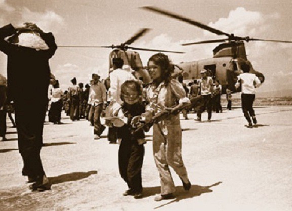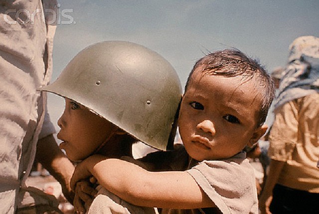 Gia đình và trẻ em chạy giặc từ miền trung vào nam trong ngày cuối tháng 4 năm 1975 Hai em bé lạc loài trong dòng người di tản