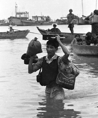 Một chiếc thuyền tị nạn ở miền trung Người chạy giặc chỉ có đôi giày, vài cái túi, và một cái radio