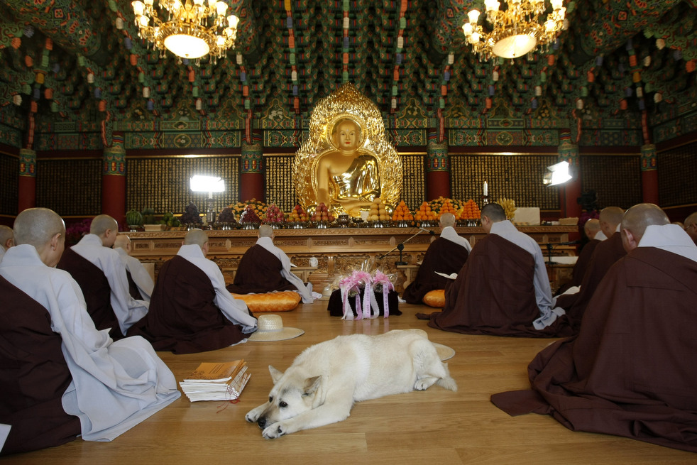 Thú vật, đặc biệt là chó, thường ít được những Phật tử tại gia quan tâm. Dường như rằng có một mong muốn là thấy những con thú tội nghiệp này bị đuổi ra khỏi những nơi thiêng liêng của Phật giáo. Nhưng cho dù thú vật không đem lại lợi ích từ việc gần gũi con người, sự gần gũi các thánh địa Phật giáo có trực tiếp hay gián tiếp đem lại lợi ích cho chúng không? Thay vì lo lắng rằng thú vật làm ô nhiễm nơi chốn Phật giáo, có thể nào chính nơi chốn ấy có một sự ảnh hưởng giúp tịnh hóa thú vật?