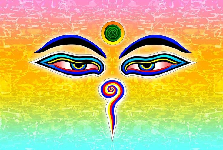 Đối với các cư dân theo đạo Phật sống trên dãy Himalaya, đôi mắt huyền bí chính là biểu tượng cho sự hiện diện của Đức Phật. Có ba phần phân biệt làm nên biểu tượng này: Một đôi mắt lớn với lông mày dài phía trên, một dấu chấm xoăn nhỏ giữa hai lông mày và chiếc mũi hình dấu hỏi.